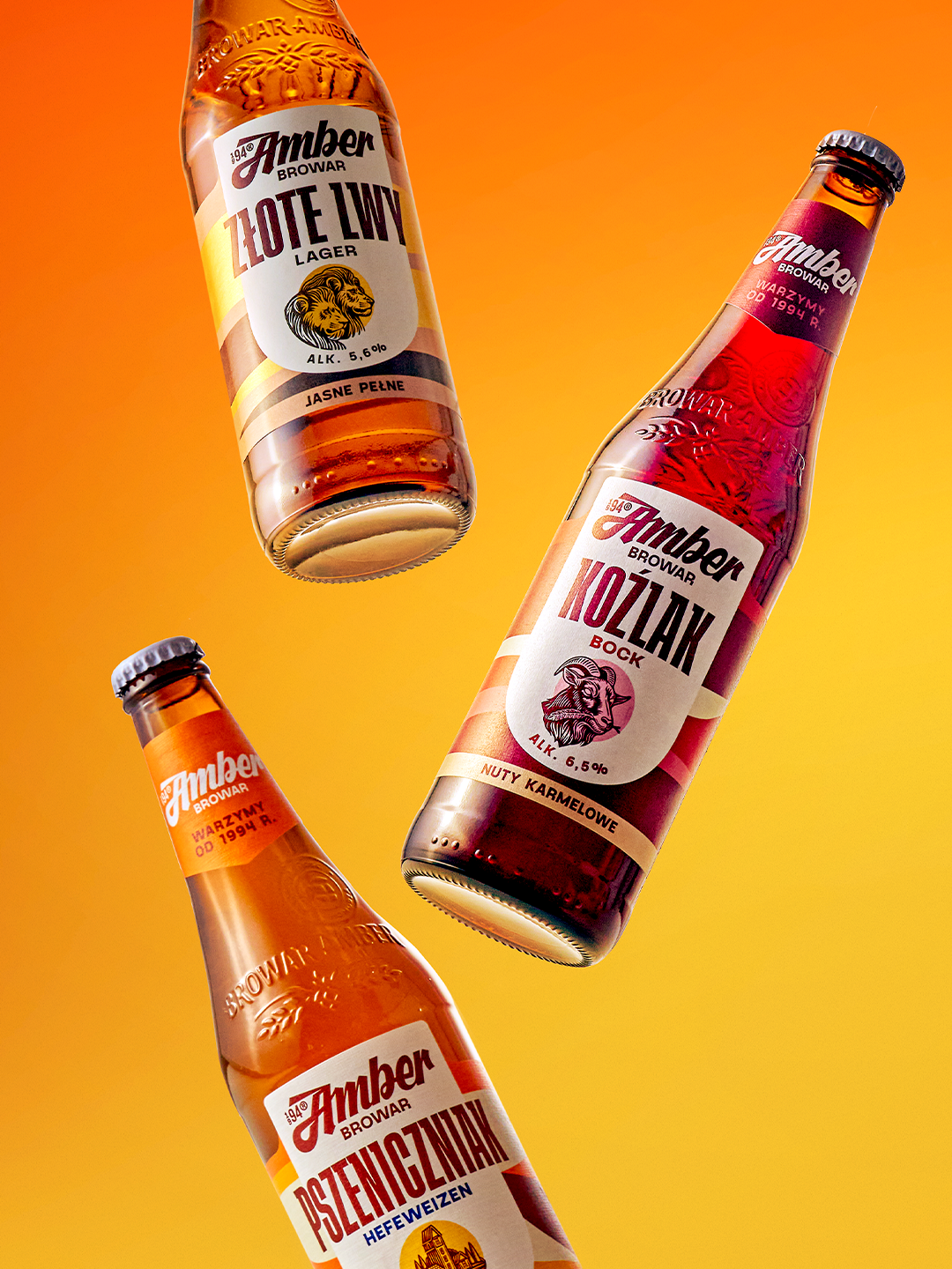Browar Amber z pomorskiego Bielkówka to jeden z czołowych browarów regionalnych w Polsce. Marka z ogólnopolską rozpoznawalnością i mocną pozycją nie tylko na północy kraju. Naszym zadaniem był rebranding podstawowej linii produktowej – z klasykami typu Johannes, Pszeniczniak czy Żywe, jak i opakowaniami nowofalowych piw APA i IPA. W związku z trendami rynkowymi bardzo ważne było też odświeżenie i wizualne wyodrębnienie w portfolio browaru piw bezalkoholowych i smakowych. Celem wszystkich działań projektowych była aktualizacja i uspójnienie wizerunku marki na półce.